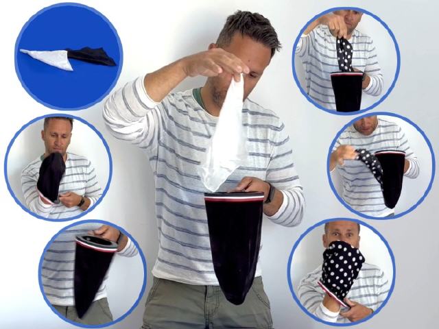 Vier tolle Effekte zum Preis von einem! Effekt 1: Der Vorführende zeigt eine schwarze Tasche, die fest an einem Griff montiert ist. Das Ganze sieht einem "Klingelbeutel" doch sehr ähnlich. Der Beu...