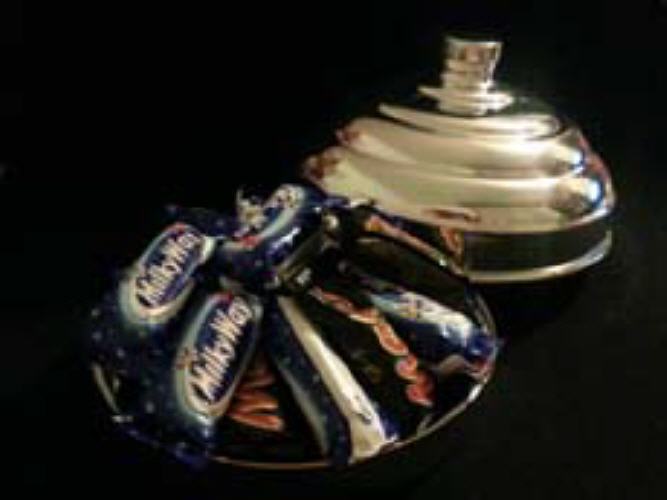Dies sind natürlich nur einige Beispiele, wie Sie die „Süße Kasserolle“ einsetzen können. Die Kasserolle ist bestens geeignet, um auf schnelle, unkomplizierte Weise Dinge hervor zu zaubern. Natürlich können Sie die „Süße Kasserolle“ auch „elegant“ (und ohne Feuer) vorführen. Lassen Sie z. B. einen Seiden-Streamer (mit eingestreutem Gold- oder Silberflitter) farbenfroh aus der vorher leer gezeigten Kasserolle herauslaufen ...