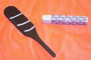 Der Magier hat ein ca. 18 cm langes Holzpaddel. Er bringt auf Ober- und Unterseite in Abständen je drei Kreidestriche an. Und nun geht es los! Mit dem Daumen wischt der Künstler sichtbar einen der ...