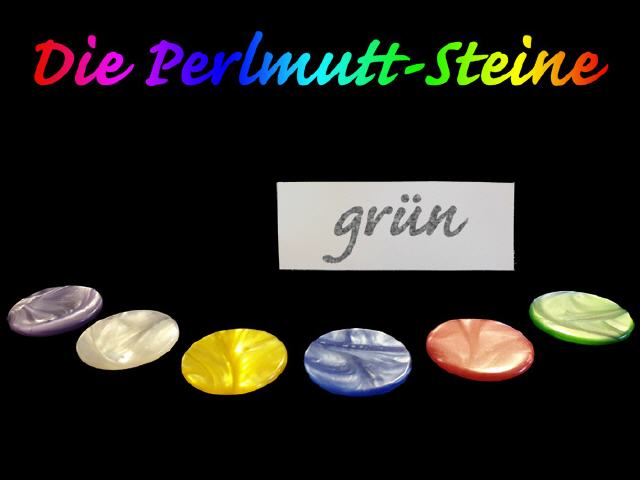 „Der legendäre Pirat ‘Käpt’n Blackbeart’, der zu großer Berühmtheit gelangte, hatte es in seinem Leben zu viel Reichtum gebracht. Sein wertvollster Schatz aber bestand aus sechs seltenen Perlmutt-Steinen, denen „magische“ Kräfte zugeschrieben wurden. Es handelte sich hierbei um sechs genau gleichgroße geschliffene verschiedenfarbige Steine die je nach dem, wie das Licht darauf fiel mit ihren schillernden Lichtreflexen wahrhaft „geheimnisvoll“ wirkten ...“. Mit diesen Worten beginnen Sie Ihre Geschichte und zeigen dabei die 6 „Perlmutt-Steine“ vor.
