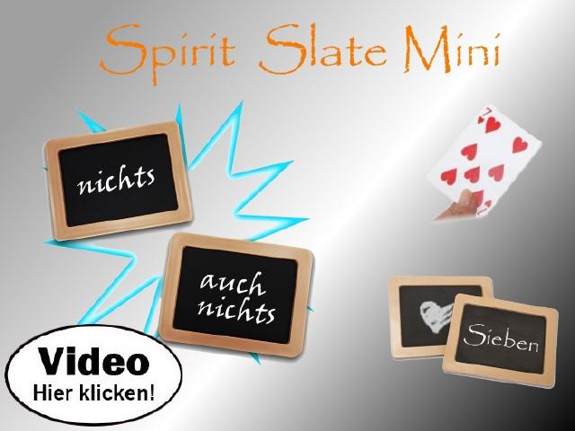 Zauberkunststück. Lieferumfang: 2 spezielle kleine Tafeln mit Kunststoffrahmen (Maße: ca. 11 cm x 8,5 cm). Lieferung ohne Kreide und ohne Kartenspiel (bitte verwenden Sie Ihr eigenes!). Inklusive Original-Anleitung in italienischer und englischer Sprache. Mit ZSF-Anleitung in deutscher Sprache!